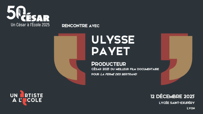 Par admin saint-exupery-lyon, publié le jeudi 4 décembre 2025 17:12 - Mis à jour le vendredi 5 décembre 2025 11:05Les élèves de 2nde 2 et 2nde 7 et leurs professeures de Lettres, Mmes Lupo et Médina, vont rencontrer Ulysse Payet, ancien élève du Lycée Saint-Exupéry et producteur de la « La Ferme des Bertrand », César 2025 du meilleur film documentaire -