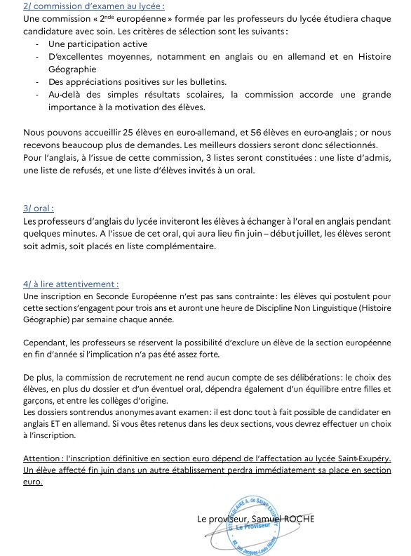 Modalités de recrutement en section européenne en 2nde, des élèves actuellement en classe de 3ème